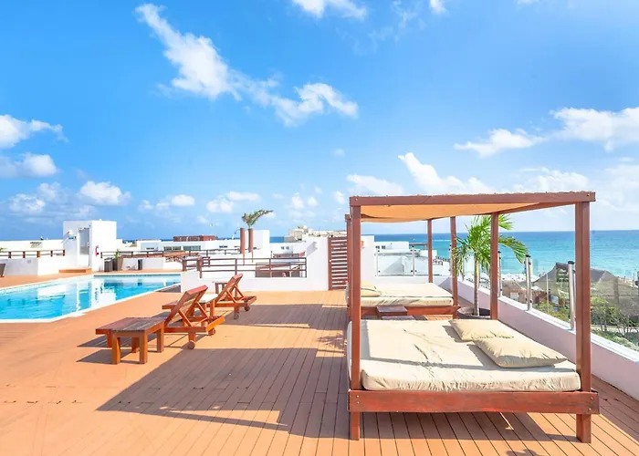 Penthouse Turquesa - Beachside - At Casa del Mar está situado a 25 minutos a pie del Museo 3D de las Maravillas, en el barrio Centro de Playa del Carmen, y acoge a sus huéspedes con un solárium, un jacuzzi y una piscina exterior. Este apartamento ofrece Wi-Fi, servicio de conserjería para una comodidad incomparable.